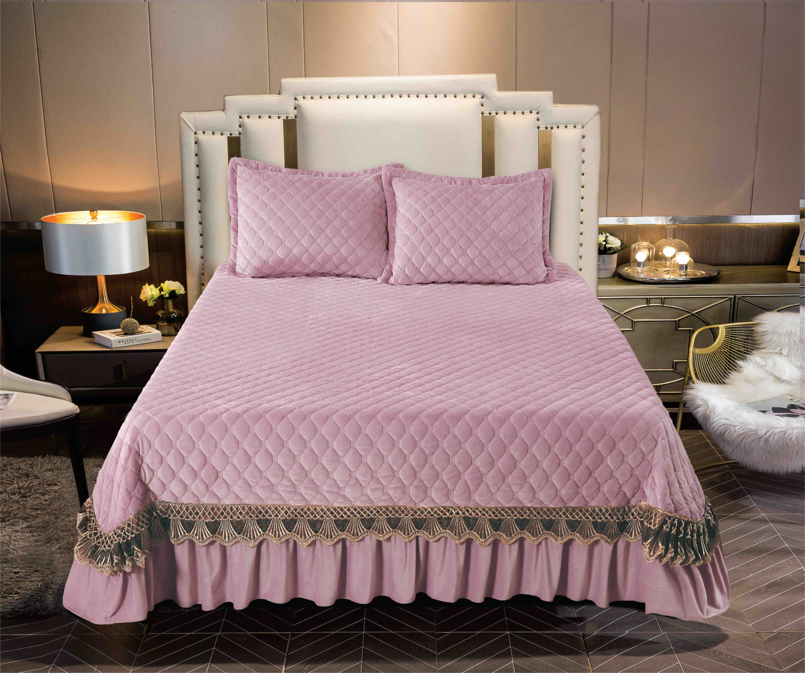 Descoperă luxul și eleganța cu această cuvertură din catifea cu dantelă și broderie de cea mai bună calitate, perfectă pentru a adăuga un strop de rafinament și stil în dormitorul tău. Cuvertura de pat este realizată cu atenție la detalii și este potrivită pentru a crea un aspect deosebit în orice cameră.