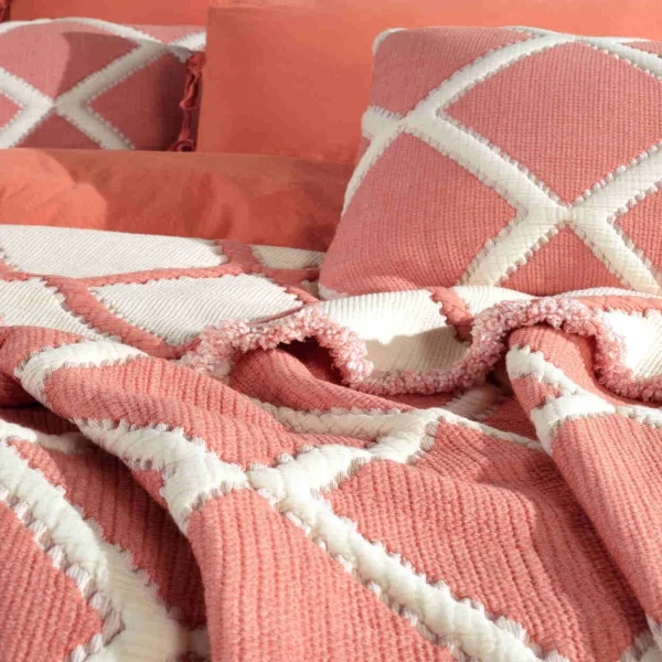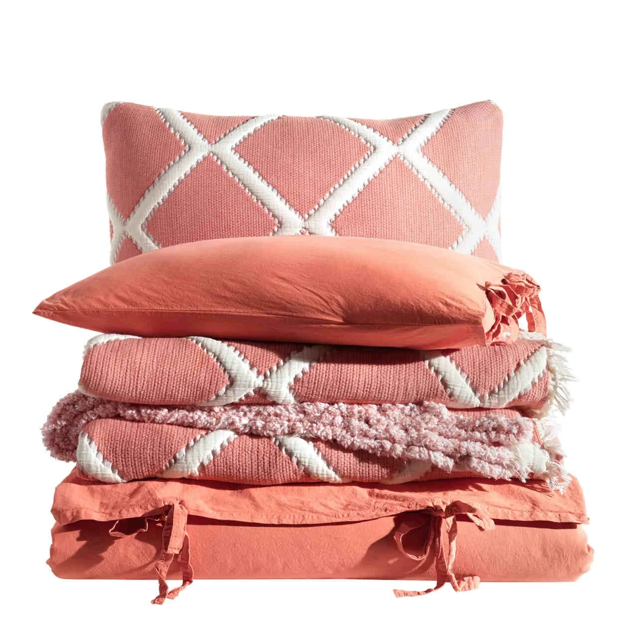 DANTELA Set lenjerie de pat si cuvertura, pat 2 persoane, bumbac tip muselina, 7 piese, Caramiziu, Garcia