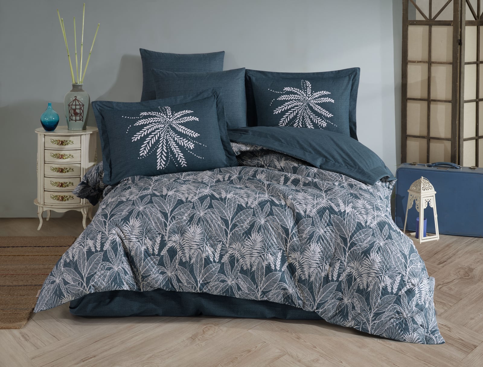 HOBBY Lenjerie de Pat Bumbac Poplin, Matlasata, 2 Persoane - Selene Petrol