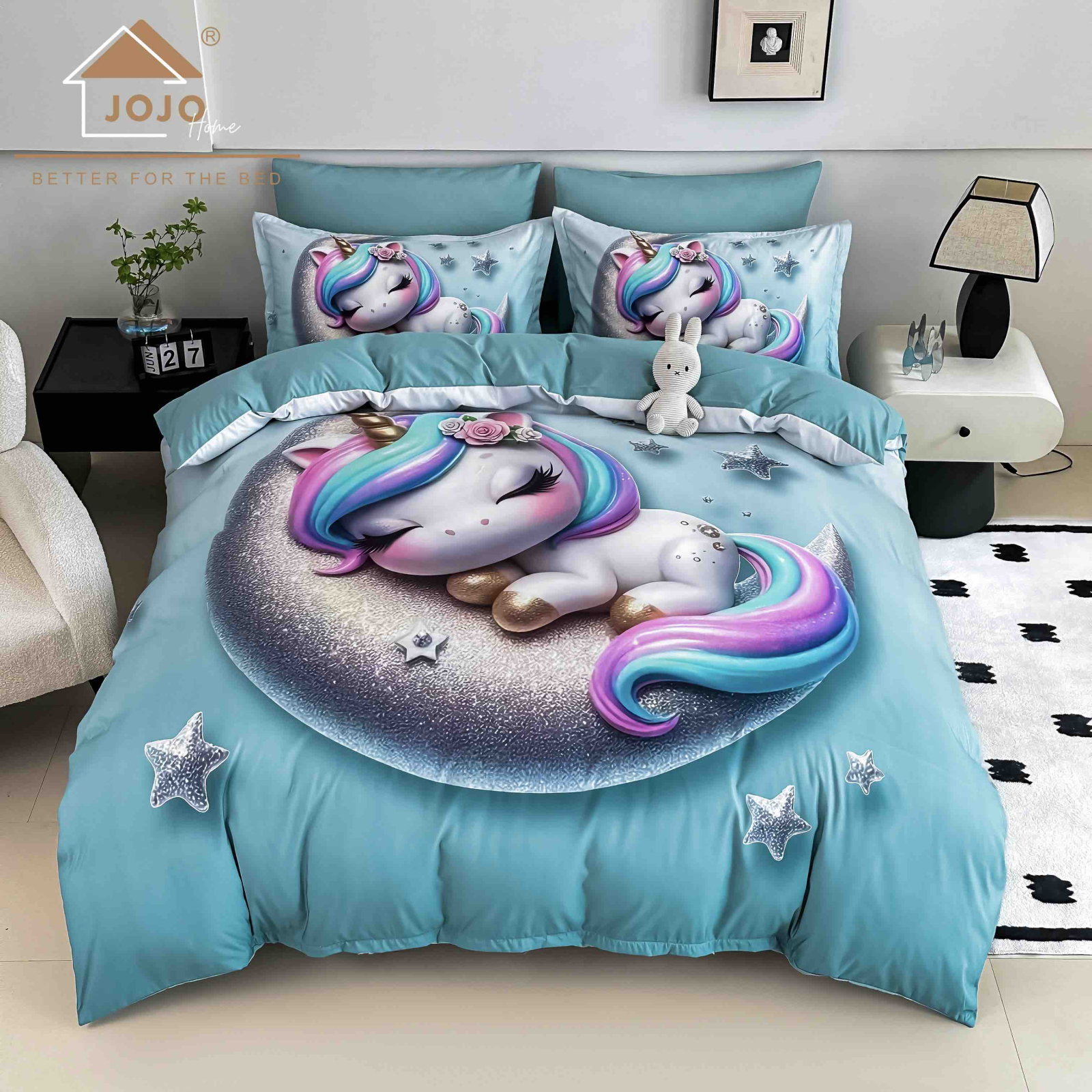 JOJO HOME Lenjerie De Pat 5D, 1 Persoana, 4 Piese, Finet Premium