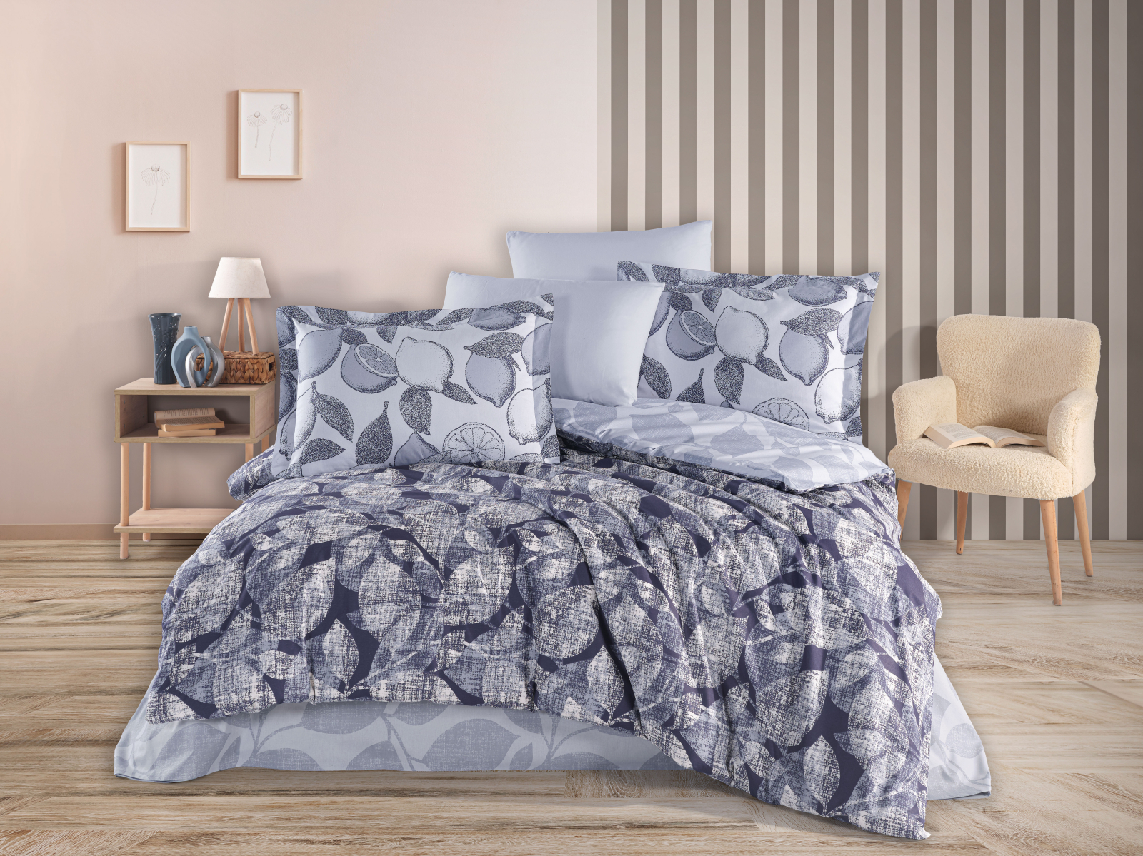 HOBBY Lenjerie de Pat Bumbac Poplin 2 Persoane - Calisse Lacivert