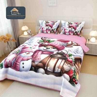 Adauga un plus de stil si confort dormitorului tau cu acest set elegant de cuvertura craciun 5 D cu doua fete de perna.
