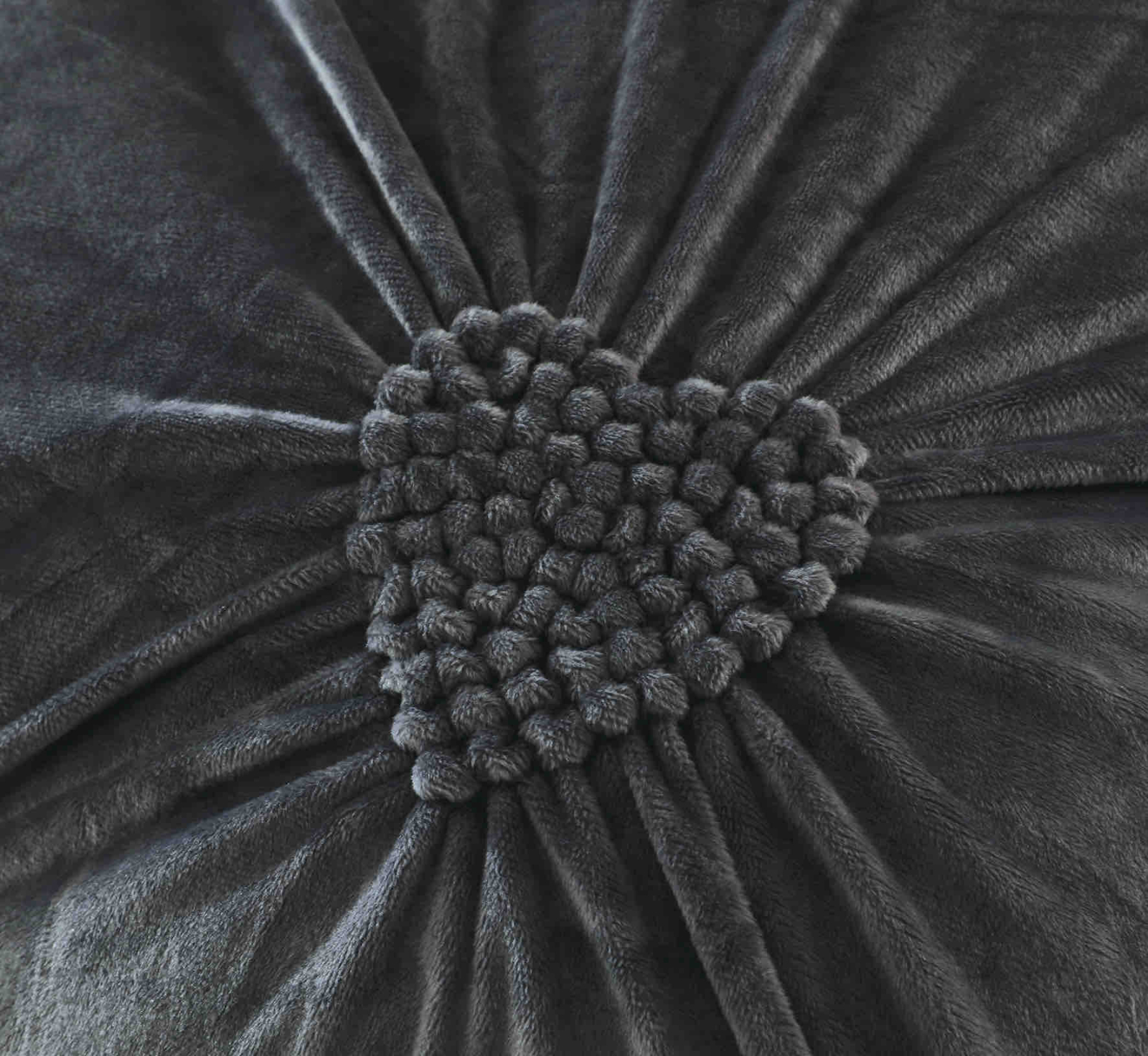 JOJO HOME Lenjerie De Pat, 4 Piese, Catifea, Inimi Brodate - Gri Inchis