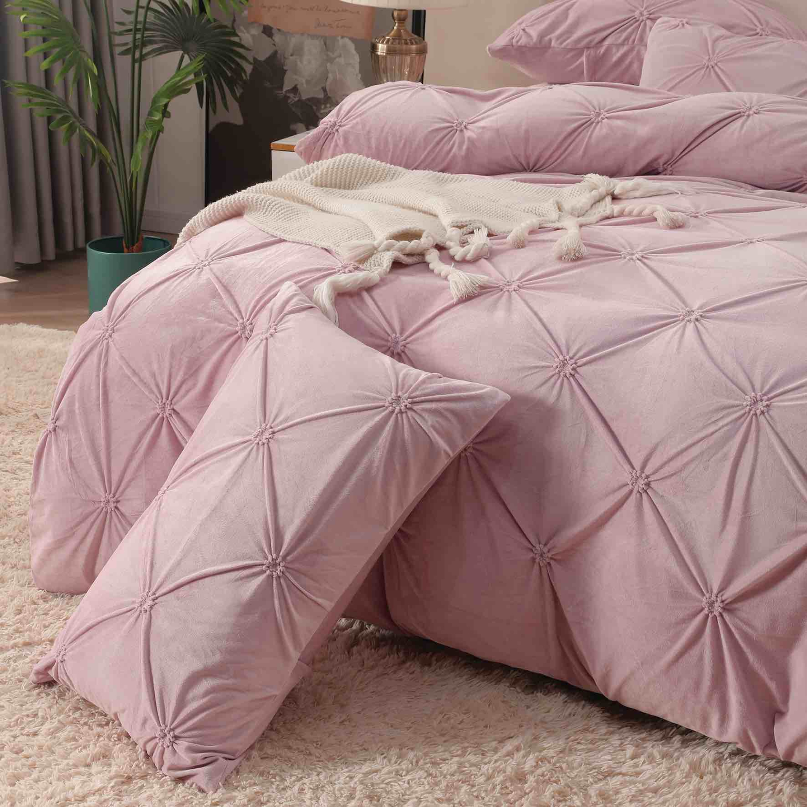JOJO HOME Lenjerie De Pat, 4 Piese, Catifea, Cu Elastic - Roz