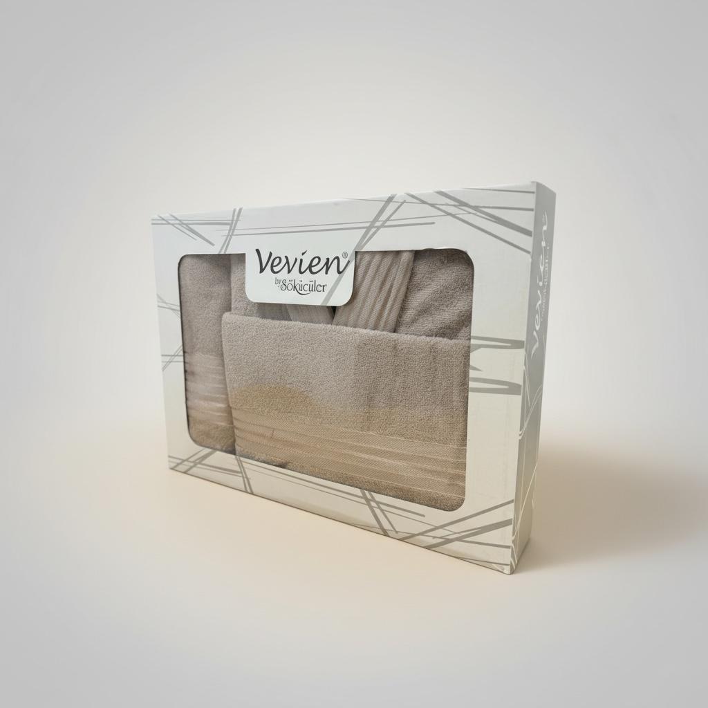 Setul este completat de doua prosoape din bumbac 100%, moi si absorbante, cu dimensiunile de 50x70 cm si 70x140 cm, perfecte pentru a crea o experienta completa de confort si armonie in fiecare zi.