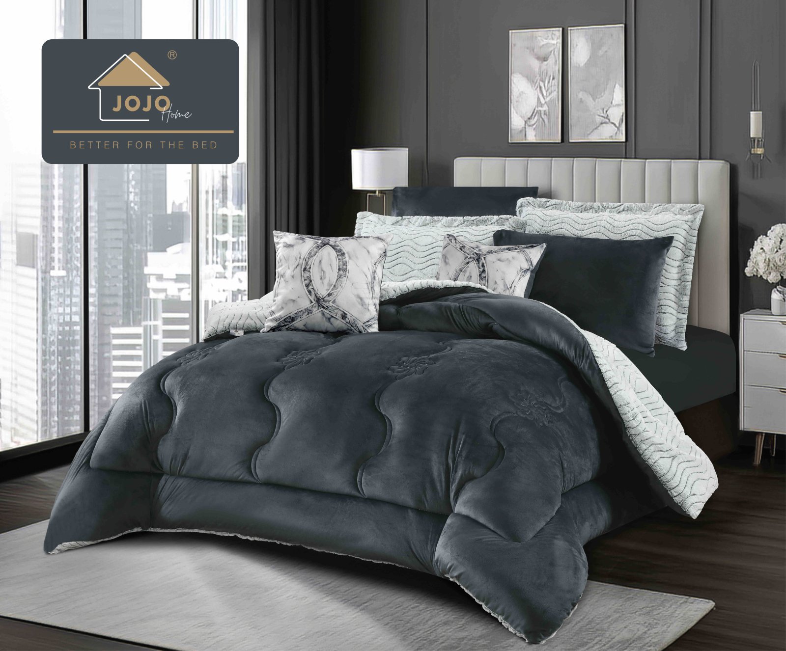 JOJO HOME Lenjerie de pat cu Pilota Inclusa, 2 Fete, Cearceaf cu Elastic, 6 Piese, Blana de Iepure Artificiala si Catifea, Gri Antracit