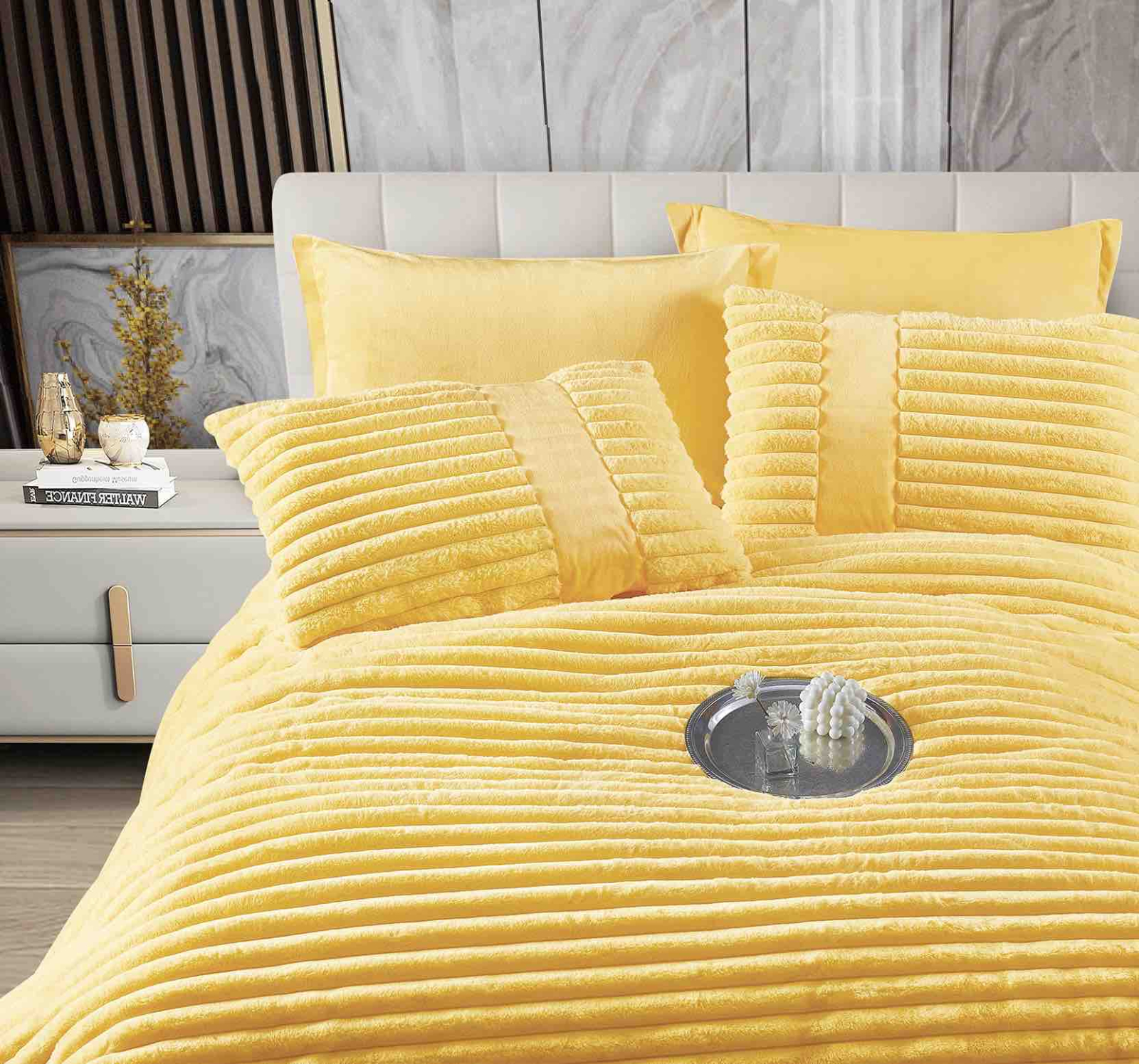 JOJO HOME Lenjerie de pat cu Pilota Inclusa, Cearceaf cu Elastic, 6 Piese, Blana de Iepure Artificiala si Catifea, Galben