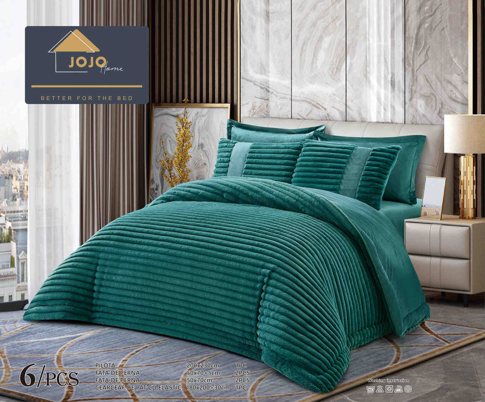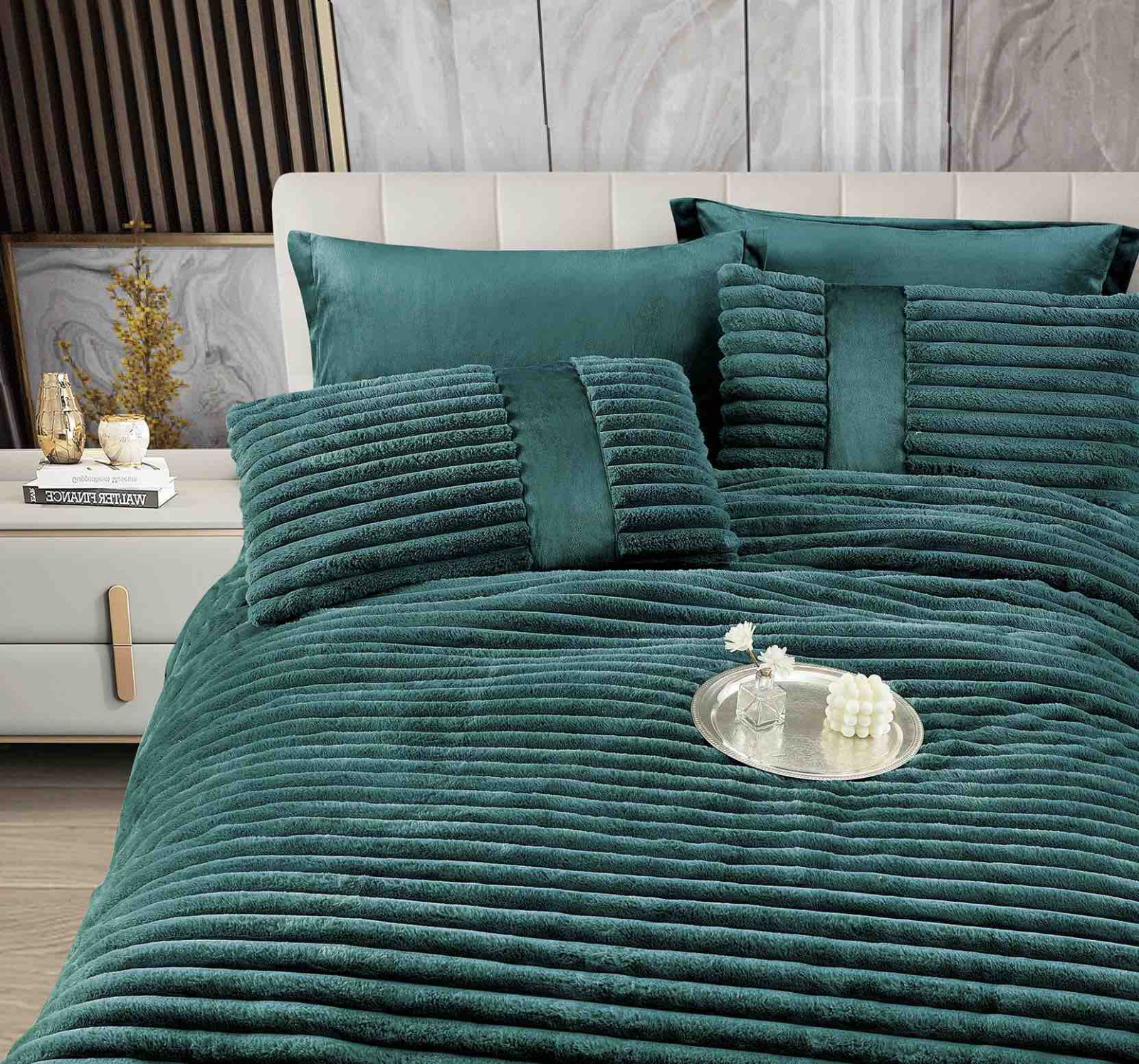 Lenjerie de pat cu Pilota Inclusa, Cearceaf cu Elastic, 6 Piese, Blana de Iepure Artificiala si Catifea, Verde