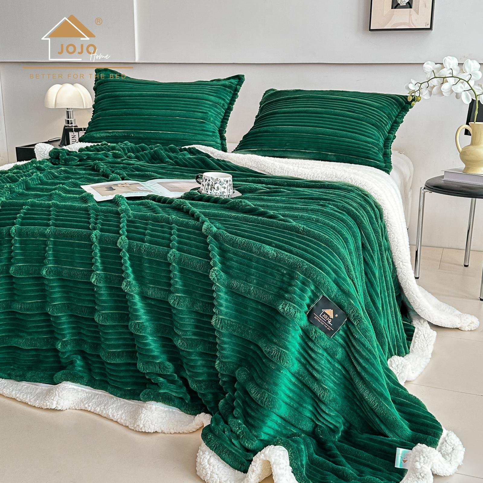 JOJO HOME Set Patura + 2 Fete Perna din Blanita Artificiala Oaie - Verde